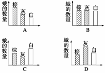 33.由于某种原因使某森林中几乎所有树木的树皮颜色变成了灰白色。多年以后,使该森林中不同颜色蛾的数量发生了变化。下图中能恰当表达这一变化的是 ( )