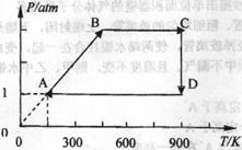 ;B状态的温度为450K; C、D状态的温度均为900K。求: B、C、D三状态时气体的体积。