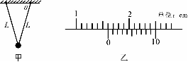 游标卡尺测量摆球的直径时主尺和游标如图乙所示,则摆球的半径r为 mm。
