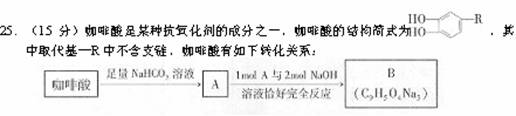 (2)写出咖啡酸与浓溴水反应的化学反应方程式: ,该反应涉及的反类型有 。