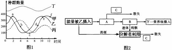 (1)请根据图1中甲、乙、丙、丁4个种群数量变化的关系,写出它们构成的食物链____________。