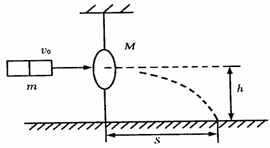 11.如图所示,质量M=100g的闭合铝框,用较长细线悬挂起来,静止铝框的中央距地面h=0.8m,今有一质量m=200g的磁铁以水平速度v0=10m/s射入并穿过铝框,落在距铝框原位置水平距离S=3.6m处。在磁铁穿过铝框后,求: