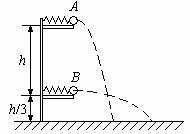 如图所示,在一个竖直支架上固定两个水平弹簧枪A和B,弹簧枪A、B在同一个竖直面内,A比B高h,B高出水平地面h/3,在此条件下,弹簧枪A、B射出的子弹的水平射程之比为SA: SB=1:2。现保持弹簧枪A、B的高度差h不变,射出子弹的初速度不变,要使两个弹簧枪射出的子弹落到水平面上的同一点,则( )