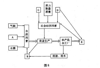 2、图8示意影响农业生产的主要因素,回答下列问题。(11分)