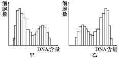17.下图甲表示某种哺乳动物细胞在正常培养中,某时刻所测得的不同DNA含量的细胞在整个细胞群体中的分布情况。向该培养液加入某种化合物并继续培养几小时后,分布情况如图乙所示,则该化合物所起的作用是 ( )