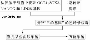 26..现在科学家已研制出了可以分化为多种细胞的“万能细胞”。其诞生过程如图所示,图中OCT4、SOX2、NANOG和LIN28是胚胎干细胞中能高度表达并决定其全能性的四个基因,将“万能细胞”植入小鼠体内,植入的细胞长成了“肿瘤”,“肿瘤”中出现了神经、骨骼、肌肉等多种类型的细胞。
