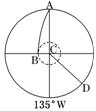下图中弧AOB是赤道上的一段,A点位于B点的正西方,弦AB的长度刚好等于地球的半径,且赤道上弧AOB所示地区属于3月12日,赤道其余地区为3月13日。读图回答12--13题。
