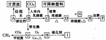 16.某厂以甘蔗为原料制糖;对产生的大量甘蔗渣按如下图所示的转化进行综合利用。其中B是A水解的最终产物;C的化学式为C3H6O3,一定条件下2个C分子间脱去2个水分子可生成一种六元环状化合物;D可使溴水褪色;H的三聚合物I也是一种六元环状化合物(图中部分反应条件及产物没有列出)。