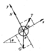 解法2球在共点力G、N、T作用下处于平衡状态.作受力图,建立直角坐标,原点与球心O重合,X轴平行于外面,y轴垂直于斜面.