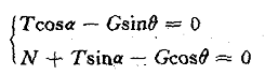 例题2(西安2004年高考模拟试题) 在图中,斜面的倾角为θ,球的重量为G,球面与斜面均光滑,测得平衡时细绳与斜面间的夹角为a.求细绳受到的拉力T多大?斜面受到的压力N多大?