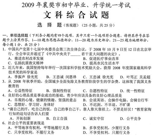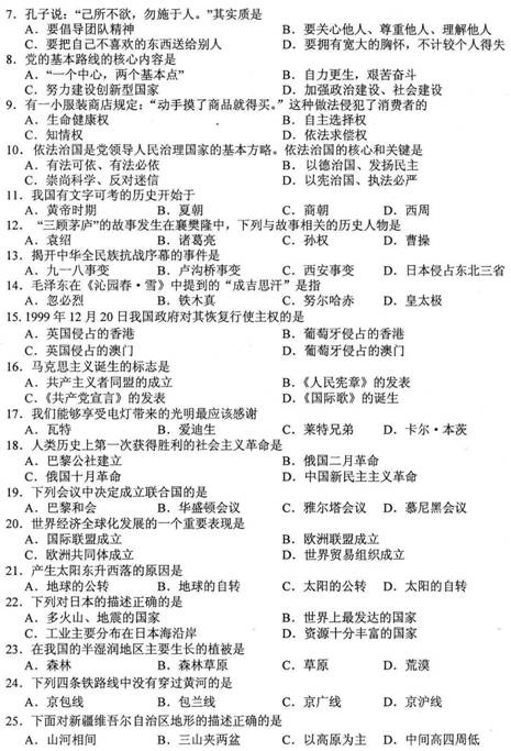 4.考试结束,监考人员将本试卷和答题卷一并收回。