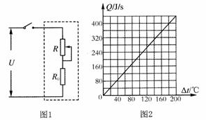 (2)假定电熨斗每秒钟散发的热量Q跟电熨斗表面温度与环境温度的温差关系如图2所示,现在温度为20℃的房间使用该电熨斗来熨烫毛料西服,要求熨斗表面温度为200 ℃,且保持不变,问应将R的阻值调为多大?