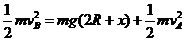 由B到C过程,由机械能守恒定律得:mvC2/2+2mgR=mvB2/2 ④