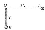 22.(2009江苏省高淳外校月考) 如图所示,质量分别为2m和3m的两个小球固定在一根直角尺的两端A、B,直角尺的定点O处有光滑的固定转动轴,AO、BO的长分别为2L和L,开始时直角尺的AO部分处于水平位置而B在O的正下方,让该系统由静止开始自由转动,求