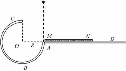 23..(2009山东省淄博模拟) 如图是为了检验某种防护罩承受冲击力的装置,M是半径为R=1.0m的固定于竖直平面内的