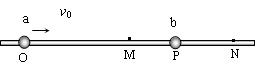25.(2009广东省湛师附中模拟) 如图所示,光滑绝缘杆上套有两个完全相同、质量都是m的金属小球a、b,a带电量为q(q>0),b不带电。M点是ON的中点,且OM=MN=L,整个装置放在与杆平行的匀强电场中。开始时,b静止在杆上MN之间的某点P处,a从杆上O点以速度v0向右运动,到达M点时速度为