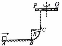 圆弧BC,在C点正上方有一离C点高度也为R的旋转平台,沿平台直径方向开有两个离轴心距离相等的小孔P、Q,旋转时两孔均能达到C点的正上方。若滑块滑过C点后P孔,又恰能从Q孔落下,则平台转动的角速度ω应满足什么条件?