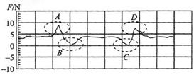 如图中的实线所示是某同学利用力传感器悬挂一砝码在竖直方向运动时,数据采集器记录下的力传感器中拉力的大小变化情况。由图可知A、B、C、D四段图线中砝码处于超重状态的为( )