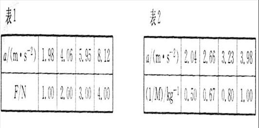 和物体质量的倒数1/M的对应数据如表2。