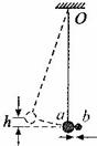 如图所示的单摆,摆球a向右摆动到最低点时,恰好与一沿水平方向向左运动的粘性小球b发生碰撞,并粘在一起,且摆动平面不便。已知碰撞前a球摆动的最高点与最低点的高度差为h,摆动的周期为T,a球质量是b球质量的5倍,碰撞前a球在最低点的速度是b球速度的一半。则碰撞后( )![]()
