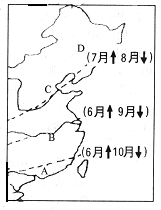 1.读我国东部地区一般年份夏季风的进退情况示意图,回答下列问题: