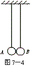 如图7-4所示,两单摆摆长相同,平衡时两摆球刚好接触.现将摆球A在两摆线所在平面内向左拉开一小角度后释放.碰撞后,两摆球分开各自做简谐运动.以mA、mB分别表示摆球A、B的质量,则