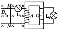 18.如图3-60所示,A、C两个线圈的匝数比为2∶1.相距1m宽的平行金属导轨处在磁感应强度为1T的匀强磁场中,电阻不计的金属棒MN在导轨上以5m/s的速度向左做匀速运动,则M、N两端的电压为____________V,灯泡L2两端的电压为____________V.