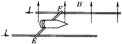 25.电磁炮是一种理想的兵器,它的主要原理如图3-66所示,1982年澳大利亚国立大学制成了能把2.2g的弹体(包括金属杆EF的质量)加速到10km/s的电磁炮(常规炮弹速度大小约为2km/s),若轨道宽2m,长为100m,通过的电流为10A,则轨道间所加匀强磁场的磁感应强度为____________T,磁场力的最大功率P=____________W(轨道摩擦不计).