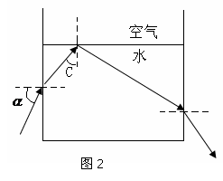 整入射角α,光线拾好在不和空气的界面上发生全反射,已知水的折射角为