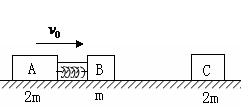 (2)如图所示,光滑水平面轨道上有三个木块,A、B、C,质量分别为mB=mc=2m,mA=m,A、B用细绳连接,中间有一压缩的弹簧 (弹簧与滑块不栓接)。开始时A、B以共同速度v0运动,C静止。某时刻细绳突然断开,A、B被弹开,然后B又与C发生碰撞并粘在一起,最终三滑块速度恰好相同。求B与C碰撞前B的速度。