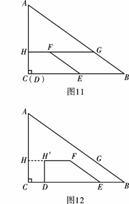 (HF∥DE,∠HDE=90°)的底边DE落在CB上,腰DH落在CA上,且DE=4,∠DEF=∠CBA,AH∶AC=2∶3