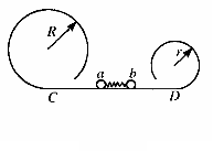 如图8所示,半径分别为R和r(R>r)的甲乙两光滑圆轨道安置在同一竖直平面内,两轨道之间由一光滑水平轨道CD相连,在水平轨道CD上有一轻弹簧被a、b两个小球夹住,但不栓接。同时释放两小球,a、b球恰好能通过各自的圆轨道的最高点。