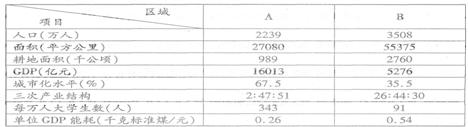 57.我国A区域位于沿海,海陆交通便利;B区域位于内陆山区,有两条省道通过,拥有丰富的煤铁资源。下表是两区域部分统计数据,据此回答下列问题。