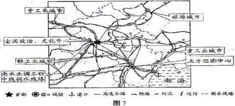 ⑦自古以来是我国政治、经济、文化中心 ⑧以航空、水运为城市间的主要运输方式