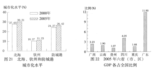 A.城市化速度最快的是北海 B.2005年广西GDP小于重庆