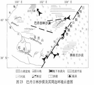 62. (09年广东地理第35题)某考察队在内蒙古巴丹吉林海港东南湖泊与高大沙山共存的奇观。根据下列资料,结合所学知识,回答(1)-(3)题。