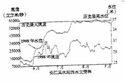 生了较大变化。读右图可知,该时段内长江流量小、水位高;流量