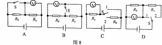 阻Rx阻值,图8中可实现测量R阻值的正确电路图是