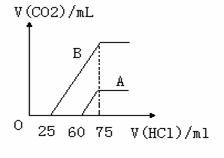 B.A曲线表明原溶液通入CO2后,所得溶质为NaOH和Na2CO3,此时用酚酞作指示剂,溶液颜色变化时消耗盐酸的体积为75mL