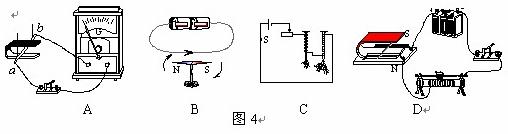 5、(2006年山东省)图4是有关电与磁实验的装置图,其中用来研究磁场对电流作用的是