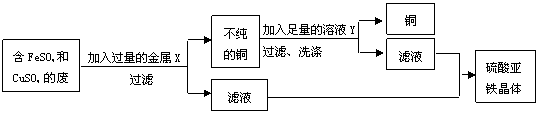 (2)设计除去铜离子,回收硫酸亚铁晶体和铜的实验方案,讨论有关问题: