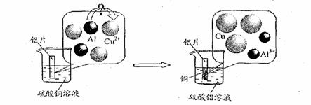 (5)在溶液中,铝比铜活泼,每2个铝原子失去6个电子,变成2个铝离子;每3个铜离子得到6个电子变成3个铜原子 (2分)