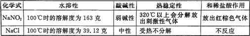 18.生活中常有发生亚硝酸钠中毒事件的报道,这是因为亚硝酸钠外观酷似食盐且有咸味;工业用盐中常混有亚硝酸钠,有关氯化钠和亚硝酸钠的部分资料如下表: