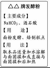 37.(6分)右图是“△△牌发酵粉”的部分信息,课外化学兴趣小组的同学对其进行了如下探究(请你完成相应填空):