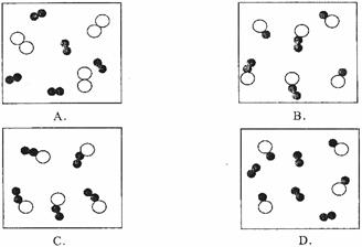 18.(09南京)下列各图中“○”和“●”分别表示两种质子数不同的原子,其中能表示由两种化合物组 成的混合物的图是