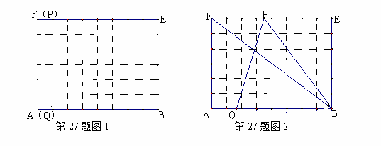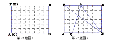 如图1,在6×8的网格纸中,每个小正方形的边长都为1,动点P、Q分别从点F、A出发向右移动,点P的运动速度为每秒2个单位,点Q的运动速度为每秒1个单位,当点P运动到点E时,两个点都停止运动。