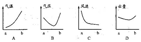 1.在学生绘制的图中,接近a→b天气实际状况的是 ( )
