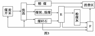 (3)煤炭、天然气能源资源丰富;质量好,开采条件好;地形开阔平坦,靠近水源;交通便利,临近消费区。 (4)E:电力工业,F:建材工业。 理由:充分利用废弃物;综合利用资源,提高资源利用率;减少污染物