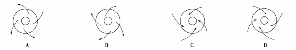 (3)下列气旋、反气旋示意图中,反映寒潮源地近地面气流状况的是 ( )