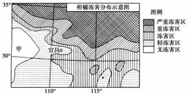 (1)指出图示区域柑橘冻害分布特点,分析甲地无冻害的原因。